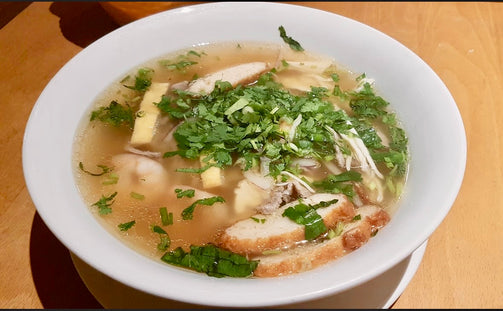 BÚN HUẾ : Hot & spicy rice noodle soup with Chicken, Beef, King Prawns or Special