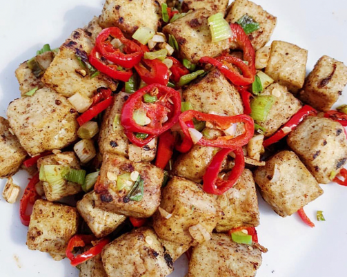 Lightly dusted in potato flour with peppercorn salt, chilli and garlic dressing