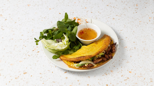 Vegan Vietnamese Pancake with tofu and fresh salads - "Bánh Xèo Chay"